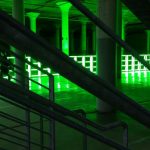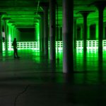 Il sotterraneo dell’edificio della Dia Foundation diventa una cripta illuminata di verde. I piloni che lo sorreggono si fanno colonne. E ovunque si riverbera questa luce anomala. Un miracolo dell’arte.