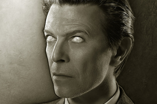 In realtà questa foto, scattata nel 2001 dal fotografo delle celebrità Markus Klinko, fa parte di una collezione di scatti che hanno per oggetto la popstar inglese che non erano mai stati esibiti prima. L’occasione del servizio fotografico era la cover del disco Heathen e tra le 21 immagini selezionate fu scelta quella in cui Bowie è cieco.