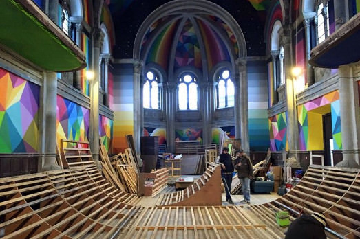 Church Brigade, Kaos Temple. Gli artigli del diavolo hanno azzannato una nuova preda? E invece no, è la creatività, bellezza. Nella fattispecie, un collettivo di giovani ha avuto un’idea per niente male. La chiesa di Santa Barbara, nella sperduta città di Llanera (Asturie) era più sperduta della città stessa, sconsacrata com’era da molti anni. Abbandonata, insomma. Ma la scintilla creativa non dorme mai e così i ragazzi, presto autonominatisi Church Brigade, un po’ street artisti e con qualche conoscenza di allestimenti e consimili, ne hanno dipinto le pareti e l’hanno pannellata di legno per farci delle piste di skate.