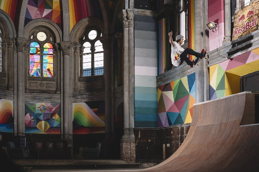 Et voilà, il miracolo: la vecchia e vuota chiesa è diventata il Kaos Temple. Colorata, saettante, frequentata. E sponsorizzata da Redbull.