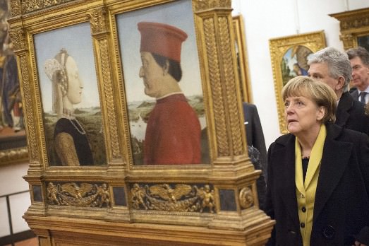 In un certo senso aveva promesso che l’avrebbe sedotta. Non come lo zio Berlusca, che ogni volta che passava una donna (premier o segretaria che fosse) minacciava (e ben oltre) di rispolverare le sue doti di vecchio (vecchissimo!) play boy. Ma insomma che lui, il Renzi, l’avrebbe incantata con la cultura, i tesori fiorentini. Vedremo se l’Angelona, che in visita agli Uffizi mostrava una faccia quasi sgomenta da tanta bellezza, risenta sul serio di una sindrome di Stendhal, magari a lungo rilascio. Anche perché se dentro era tutto un florilegio di: “ma prego accomodati, faccio strada io. Toh, Angela, guarda qui che robina” e via intortando, fuori il clima era tutt’altro. Firenze in stato di guerra. Non certo per i contestatori, ma per i cecchini, cattivissimi, appostati ovunque. Neanche fossimo alla manifestazione di Parigi post massacro Charlie Hebdo. Beh, insomma, almeno su questo sì che siamo europei. Vien via!