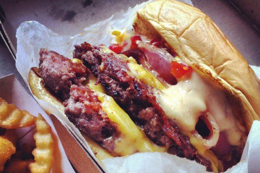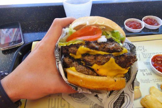 Qui è tutta roba vera, ha pure un nome. Si chiama: The ranch house burger, confezionato dalla Cheesecake Factory. E sta in buona compagnia con altri hamburger monster (con dettagliata spiega di ingredienti e numero di calorie) selezionati dal Guardian per la classifica dei “più grandi e peggiori hamburger americani”. Abbiamo scelto questo perché è particolarmente evocativo del mondo che ruota intorno all’oggetto in questione e perché indubbiamente richiama anche certa arte dei nostri tempi, attenta a non perdere mai d’occhio vizi e perversioni dell’oggi. Che, per quanto si possa spingere sull’idea di “nutrire il pianeta” e di ridistribuire le risorse alimentari, in genere hanno la meglio. Basti pensare che ci sono cliniche dove si va per “perdere peso”, come si usa dire pudicamente, dove per perdere un chilo si sborsano mille dollari o mille euro.
