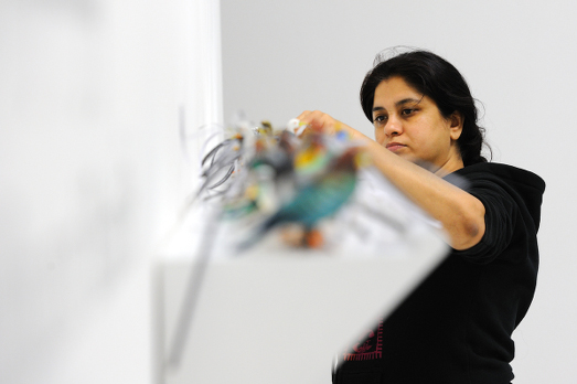 Hema Upadhyay era un’artista indiana che era riuscita a farsi apprezzare fuori dal suo Paese. Aveva esposto molto all’estero e anche da noi, alla galleria Studio La Citta di Verona e poi all’HangarBicocca e al Macro, nel 2009, dove aveva presentato una potente installazione, una montagna di piccole casette, ricavate da latta di risulta e fatte a mano da lei, una ad una. E poi nel 2015 aveva esposto alla Biennale di Venezia.