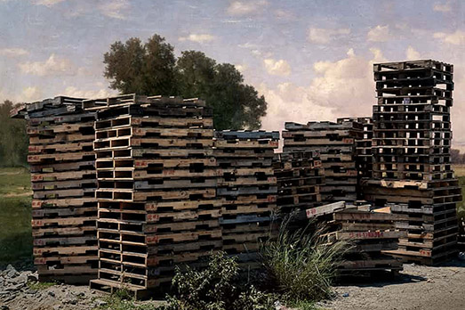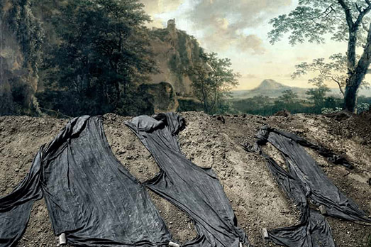 Un solitario canestro da basket si staglia sullo sfondo di “Lago di Averno, Enea e la Sibilla cumana” il dipinto del 1798 di William Turner. Succede in “Updated Landscapes” il progetto di Guillaume Hebert che mescola frammenti di paesaggi attuali con sfondi appartenenti a dipinti di old masters. Oltre a Turner, le pennellate di altri grandi nomi come Albert Bierstadt, Philip de Koninck e Gustave Courbet fanno da scenario a composizioni create per riflettere sui cambiamenti della società dovuti ai processi di urbanizzazione, invitandoci a osservare la differenza tra la visione di un pittore e quella di un fotografo contemporaneo, e ridefinendo la nostra percezione estetica.