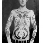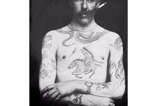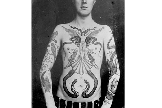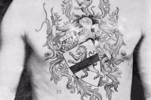 Fino all’8 gennaio 2018 il National Maritime Museum Cornwall ospita “Tattoo: British Tattoo Art Revealed”, esposizione che ripercorre la storia del tatuaggio nel Regno Unito attraverso più di 400 opere d’arte, fotografie e manufatti storici. Uno dei protagonisti della mostra è Sutherland Macdonald, considerato il primo tatuatore professionista del Paese. La moda del tatuaggio nell’Inghilterra vittoriana iniziò dopo che l’equipaggio dell’esploratore James Cook, durante un viaggio nel sud del Pacifico, entrò in contatto con l’usanza polinesiana di decorare la pelle con l’inchiostro. Macdonald iniziò a tatuare nel 1880 mentre era di servizio nell’esercito britannico, nel 1894 ricevette un brevetto ufficiale per poter utilizzare la macchinetta elettrica che aveva inventato, e dopo pochi anni aprì uno studio a Londra, al 76 di Jermyn Street ufficializzando così una nuova categoria professionale, quella del tattoist, un incrocio tra le parole tattoo e artist. Nel corso della sua attività sperimentò varie tecniche, usò utensili e strumenti giapponesi in avorio per ottenere degli effetti particolari, e fu uno dei primi ad adoperare il blu e il verde per colorare i suoi lavori. Ebbe anche una clientela d’elite, che comprese aristocratici, teste coronate come i re di Norvegia e Danimarca, e i figli della regina Vittoria. Ecco alcune fotografie che mostrano i lavori più elaborati di Macdonald, pioniere dell’arte del tatuaggio. (NG)