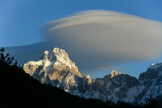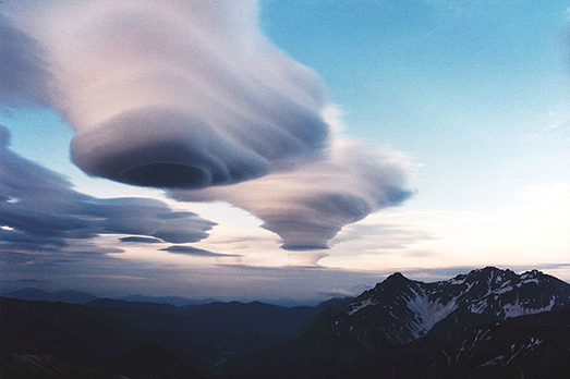 Il nome scientifico è particolarmente solenne: altocumulus lenticularis. Che, tradotto in italiano, significa nuvole lenticolari, chiamate così perché ricordano la forma delle lenti. L’origine è altrettanto complicata: derivano dalle cosiddette onde orografiche. Il che, di nuovo tradotto in linguaggio accessibile, significa che queste nuvole si generano quando il flusso d’aria si modella relativamente all’orografia dei rilievi montuosi. Ma ci vuole anche la giusta dose di umidità e altre condizioni.