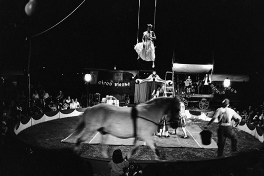 Giuliano Plorutti è un fotografo italiano che per quasi 10 anni ha viaggiato in Italia, Francia, Ungheria e Cecoslovacchia documentando lo stile di vita degli artisti circensi. Affascinato dal nomadismo e da uno stile di vita così particolare, dai primi anni ’90 e poi principalmente dal 2000 al 2009, Plorutti ha seguito diversi circhi, da quelli delle famiglie più umili a quelli delle aziende più famose. Giocolieri, musicisti, trapezisti, funamboli, clown, sono i protagonisti di questo reportage in bianco e nero che ritrae vari aspetti della vita degli artisti itineranti: mentre si esibiscono, nei momenti di riposo, o più semplicemente durante la loro routine quotidiana. Vi proponiamo alcuni scatti estratti da “Circus”, titolo del libro uscito nel 2014 edito da Damiani Editore, che ci racconta il dietro le quinte del mondo magico, e sempre affascinante, del circo. (NG)