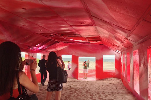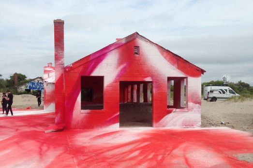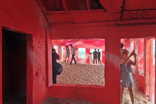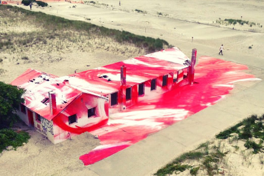 Ora è intervenuta in un ex edificio militare a Fort Tilden per il progetto Rockaway sostenuto del PS1 MoMa e lanciato con cadenza biennale per realizzare interventi all’aperto dopo i disastri causati dall’uragano Sandy. La costruzione era seriamente danneggiata dall’uragano e versava in uno stato di abbandono. Ora invece è rosso fiamma. E attrae visitatori.