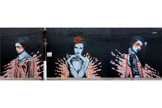 San Paolo è una delle città più popolose del mondo. Va da sé che ci siano o che vi passino tanti street artist. Questa volta abbiamo scelto FIN DAC (nato in Irlanda e di base a Londra) e la californiana Angelina Christina. Insieme hanno realizzato Splash, un trittico dove compare una figura femminile, ma che sembra alludere soprattutto a un grande splash di colore con cui hanno ricoperto il muro di una strada della città brasiliana.