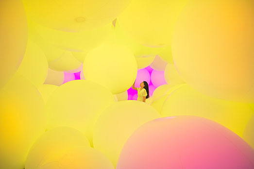 Il collettivo giapponese TeamLab ha creato un’imponente installazione d’arte digitale, in cui i visitatori si trovano circondati da enormi sfere colorate che cambiano colore ogni volta che vengono toccate. Comunicando tra loro attraverso una connessione wireless, i sensori di raccolta dati presenti nelle sfere monitorano e imitano il tocco umano, diffondendo i dati a tutti gli elementi e alterando gradualmente la tonalità di tutta la stanza. “Homogenizing and transforming world” è una delle dieci installazioni interattive che unisce arte e tecnologie presentata in occasione della biennale dedicata ai bambini, visibile alla Galleria Nazionale di Singapore fino all’8 ottobre 2017. (NG)