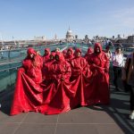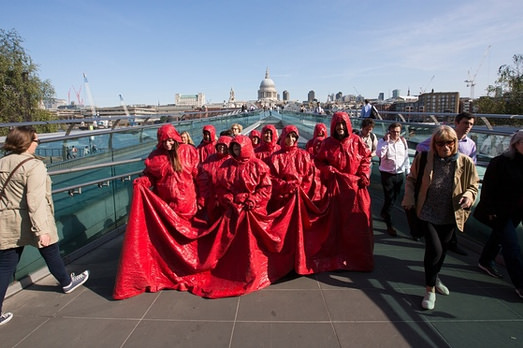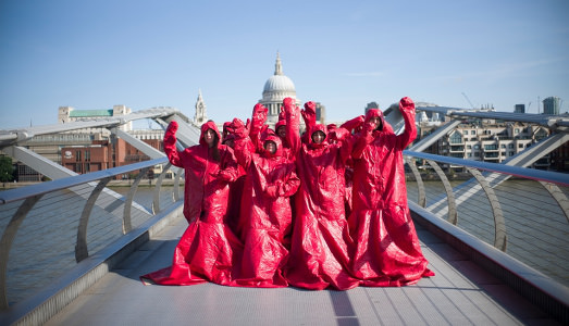 Non a caso la sua performance ha avuto luogo sul Millennium Bridge, il ponte pedonale davanti al museo disegnato da Sir Norman Foster. È qui che Nicola L. ha riunito undici volontari per fargli indossare il Red Coat, una scultura da indossare, appunto, fatta con materiali industriali, creata la prima volta nel 1969 quando Caetano Veloso e Gilberto Gil invitarono l’artista a fare una performance per il celebre concerto all’Isola di Wight.