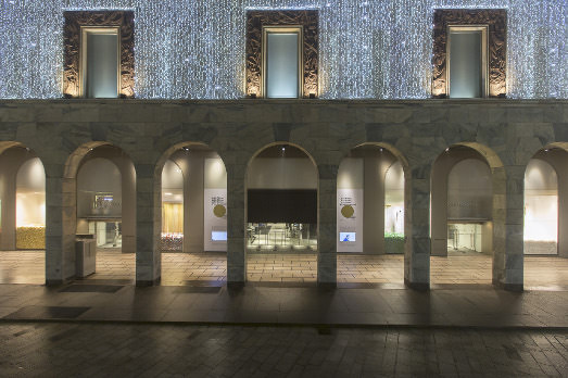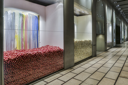 Palle, solo palle di Natale. Colorate, disordinate e molto allegre. Festaiole come non mai. Per questo Natale, La Rinascente di Milano rinuncia ad esporre merci e si vota all’arte. Affidandosi all’artista svizzero John Armleder, chiamato da Cloe Piccoli, che occupa tutte e sei le vetrine in Piazza Duomo. Palle davanti e tele con colature di colore dietro.