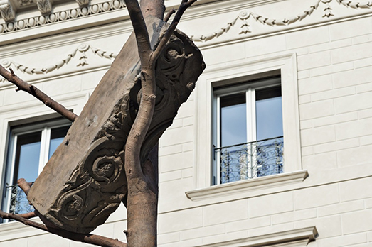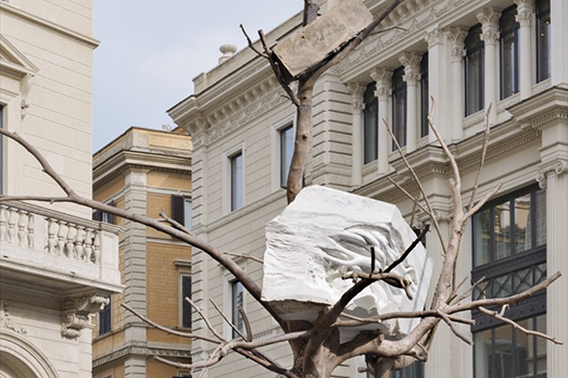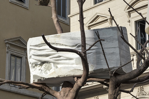 Due alberi di bronzo di 18 e 9 metri che intrecciano i loro rami verso l’alto sollevando un blocco di marmo scolpito di 11 tonnellate. Stiamo parlando di Foglie di Pietra (2016) di Giuseppe Penone che da ieri sera è visibile a Roma a Largo Goldoni, di fronte al palazzo della maison Fendi. L’opera è stata realizzata a Pietrasanta dalla Fonderia d’arte Massimo De Chiaro, azienda specializzata nell’antica tecnica della fusione a cera persa che dal 1980 collabora con numerosi artisti di fama mondiale. È così che per un anno circa trenta persone hanno lavorato alla costruzione di Foglie di Pietra, tra stampi, cere, e operazioni di fusione, montaggio e rifinitura. Secondo l’artista in questa scultura «archeologia e le rovine, la storia e la biologia si innestano l’una sull’altra creando un legame indissolubile tra natura e cultura, e celebrando una profonda sintesi tra lo scorrere del tempo naturale e quello umano in cui è presente in superficie una nostalgia romantica per antiche civiltà perdute». Così, proseguendo il percorso inaugurato con “Matrice”, la personale dedicata a Penone a Palazzo della Civiltà Italiana, la storica casa di moda ha presentato in stretta collaborazione con il Ministero della Cultura e il Comune di Roma, il suo regalo alla capitale, un’opera pubblica permanente nel cuore del centro storico. (NG)