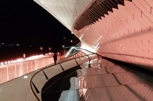 Così appare il MAAT, il nuovissimo Museo Arte Architettura Tecnologia che si inaugura il 5 ottobre a Lisbona. Disegnato da Amanda Levete, forse l’erede di Zaha Hadid quanto a visionarietà, architetta che è riuscita a far convergere esterno e interno nella forma di un luogo non convenzionale. Immaginato per fare un’esperienza dello spazio piuttosto che una qualunque visita al museo. E questa è solo una parte del MAAT. L’altra è ricavata dalla ristrutturazione di una grande centrale elettrica, dove grandi macchinari oggi in disuso si alternano a spazi per mostre temporanee.
