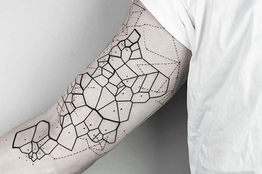 Autrice di questi tatuaggi contro corrente è Malwina Maria Wisniewska, artista che viene dall’Est ma da tempo di base a Londra. Malwina, con un piglio dark quel tanto che non guasta, si è inventata un nuovo stile: il tatuaggio geometrico. E stile nuovo anche per i tatuati, che non sono i nerboruti che conosciamo o i fisici da urlo che in genere sfilano nei concorsi di tattoo, ma creature quasi efebiche, bianche, languide. Insomma, anche nel tattoo c’è spazio per tutti.