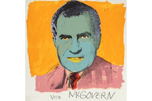 Ora, da ultima, ci si è messa Deborah Kass, con un‘opera “appropriazionista” che fa il verso al ritratto che fece Warhol di Nixon. Il punto è che in questa opera Nixon incitava a votare il suo avversario, il senatore Mc Govern, e ora il Trump warholizzato di Kass chiede che si voti per Hilary Clinton.