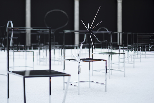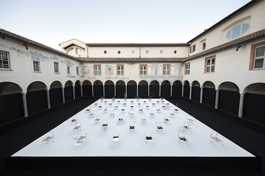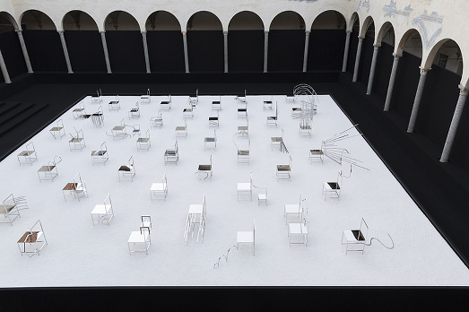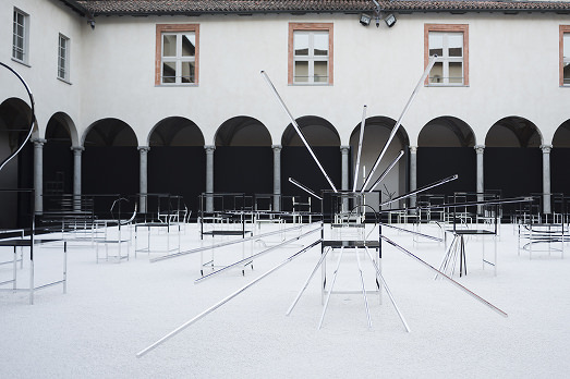 La storia, credeteci, è quasi meno interessante del risultato. Abbiamo avuto la fortuna di vedere le 50 Manga Chairs disegnate da Nendo per la Friedman Benda Gallery di New York da un punto di vista speciale, il primo piano della facoltà teologica di Milano, affacciata sul chiostro della Chiesa di San Simpliciano a Brera, e non possiamo far altro che constatare che stavolta il design supera l’arte, o almeno si confonde.