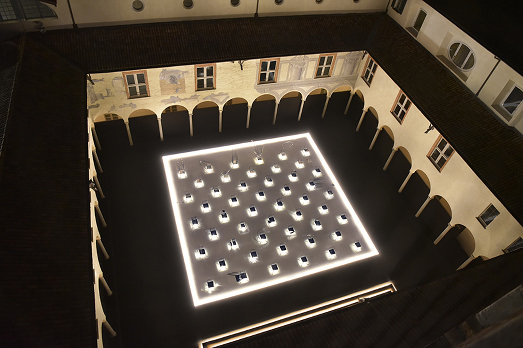 Un’installazione meravigliosa, di cui potete vedere molte immagini nella gallery, che tramite le linee dei manga, il bianco e il nero e la luce mischia la spiritualità orientale con i tratti del culto occidentale, dimostrando che il mistico non conosce dio, ma è uno status mentale.
