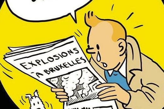 #JeSuisBruxelles è l’hashtag che è circolato ben presto ieri e usato da diversi artisti per esprimere il proprio rifiuto del terrorismo e della paura che questo vuole fomentare. Era accaduto dopo la strage di Charlie Hebdo, dopo gli attacchi del 13 novembre e di nuovo oggi in prima fila ci sono vignettisti, disegnatori e artisti. Il Belgio, poi, è la patria di Tintin, uno dei fumetti più popolari, quasi un eroe nazionale. Tintin, creato nel 1929 da Georges Remi (in arte Hergé), ieri piangeva leggendo il giornale: «Due esplosioni all’aeroporto di Bruxelles. Casa mia…».