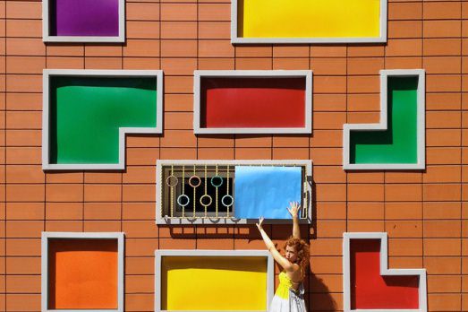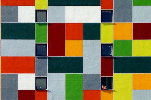 Sembra un quadro di Mondrian. Un’altra somiglia invece a una composizione di spot painting di Damien Hirst. E un’altra a una di Theo Doesburg. Siamo nel Paese delle meraviglie di De Stijl con tocco young british? No, siamo a Istanbul. E questa è la facciata di una scuola pubblica.