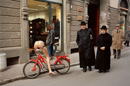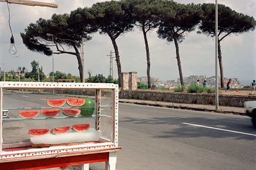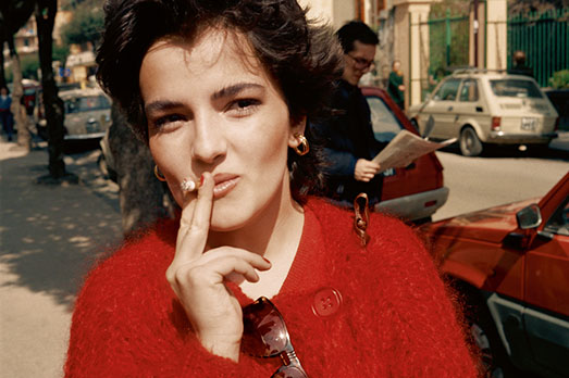 “Vedi le nostre debolezze, ci spogli e ci denudi, fai l’amore attraverso la telecamera e infine ci veneri.” Con queste parole Luigi Ghirri commentava il lavoro del fotografo americano Charles Traub, che negli anni ’80 iniziò a scattare foto durante le sue vacanze in Italia. Napoli, Agrigento e Marsala, poi Roma, Firenze, Milano e Venezia, Traub attraversò la penisola da nord a sud, restituendoci un ritratto unico dell’Italia di quegli anni. Con la sua Plaubel Makina 67, fotografò donne, uomini e bambini che incontrò per strada, al mare, o durante una semplice sosta alla Fontana di Trevi. I suoi scatti, caratterizzati dai colori scintillanti e luminosi, furono pubblicati per la prima volta nel 2014 nel libro la “Dolce Via”, edito da Damiani, che presenta la raccolta completa del suo lavoro, da sempre considerato uno sguardo unico e inedito su un’Italia che oramai non esiste più. (NG)