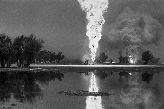 Sebastiao Salgado, il celebre fotografo brasiliano, c’era e ha documentato il tutto con il suo infallibile obiettivo. Stavolta, facendo a meno di quell’effetto un po’ patinato, ravvisabile quando ad esempio fotografa gli ultimi della terra che si fanno un gran mazzo sui campi e che risultano avvolti in un effetto flou piuttosto estetizzante – Salgado ha fotografato a ciglio asciutto. Raccontando la follia della post guerra, il pensiero criminale di Hussein, senza rinunciare alla grandiosità lirica del suo bianco e nero. Il tutto per una bella edizione di Taschen.