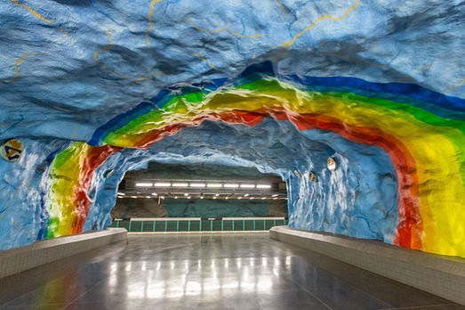 Stoccolma grigia? Guardate qui, e ricredetevi. La sua metropolitana è la galleria d’arte più lunga del mondo, cominciata alla fine degli anni Cinquanta e via via cresciuta fino ad oggi. Vi sono intervenuti per lo più artisti scandinavi, che hanno creato ambienti visionari, del tutto fuori contesto per una città nordica come è la capitale svedese: grotte, fiori giganti, installazioni in bronzo che evocano ambienti infuocati e, naturalmente, murales e graffiti di artisti ribattezzati con scarsa fantasia il “Banksy scandinavo”.