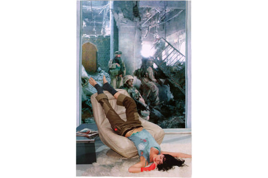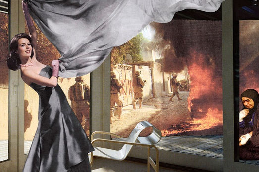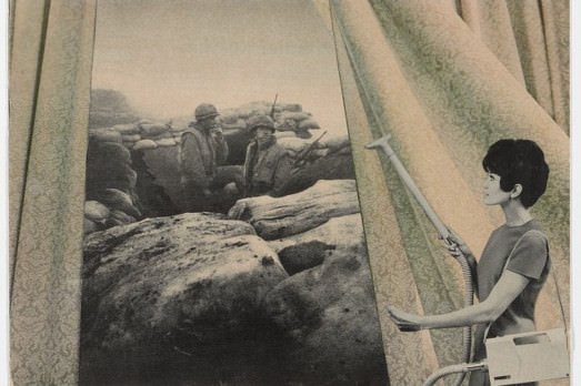 Con i suoi collage metteva in scena le contraddizioni del mondo di allora: la guerra del Vietnam, i conflitti successivi che erano lontani dall’Occidente, ma che nei suoi lavori, in particolare la serie dal titolo profetico Bringing the war home, irrompevano brutalmente nella tranquilla vita delle happy family americane.
