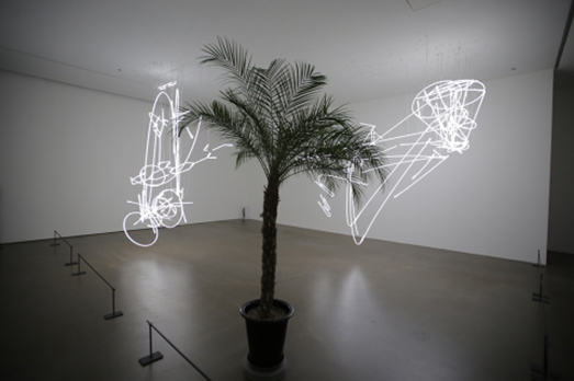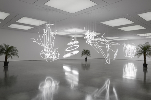 Ma quelle installazioni luminose dove si snodano i caratteri grafici che compongono i sui statement, la presenza di un suono ricavato dall’aria che vibra in alcuni segmenti delle sculture, l’uso elegante del vetro che abbiamo avuto già l’occasione di ammirare nella mostra ospitata due anni fa alla Serpentine Gallery (sempre di Londra) è totalmente farina del suo sacco. E ne fanno un grandissimo artista!