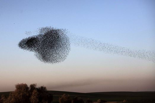 Sono disegni bellissimi, immagini in movimento che attraversano il nostro cielo. Questi scatti sono stati fatti in Israele, nel Negev. Ma anche da noi gli stormi di uccelli realizzano delle composizioni stupefacenti. Anni fa, a Roma, senza bisogno di andare lontano, Manuel Presti ne fotografò un bel po’ e si aggiudicò il premio per la migliore fotografia naturalista istituito dalla Bbc e dal Natural History Museum britannico. «Consiglio ai giovani che vogliono fare questo mestiere di non andare necessariamente lontano, in Africa o in altri posti selvaggi. La bellezza della natura è molto più vicina di quanto non crediate, basta guardarla con gli occhi giusti».