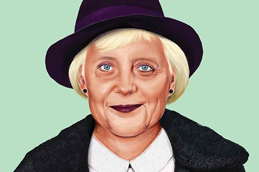 Metti un illustratore, in questo caso l’israeliano Amit Shimoni, e uno storyteller, Stephen Ellcock. Lavorano insieme e, in un certo senso, riscrivono la storia. Così Barack Obama diventa Barrie Obama, militante no logo che si batte per la ridistribuzione delle risorse alimentari nel mondo. Angela Merkel è “&ela” Merkel, aspirante cantante un po’ in là con gli anni, che non a caso canta canzoni vintage. Ma c’è anche Winny Churchill (Winston Churchill) che oggi è un guru di yoga e di pratiche meditative fondate sulla salute mentale e del corpo. Mentre Gandhi (ma la sua nuova vita ci piace poco) è diventato un fricchettone indiano, emigrato in Occidente dove non riesce a trovare un chai decente (bah).