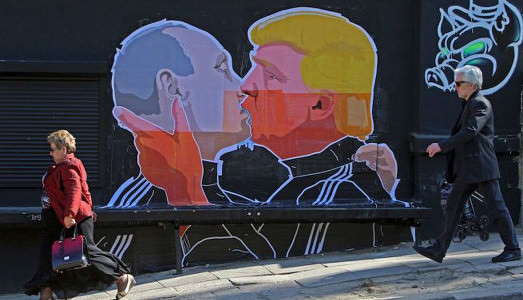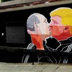 Il tutto avviene a Vilnius, Lituania, dove la popolazione è preoccupata della eccessiva simpatia tra il candidato alla presidenza degli Stati Uniti e il presidente della grande Russia. Per Trump, Putin è un “leader rispettabile” e per Putin Trump è una “persona colorita e talentuosa”. A dare volto ai timori è stato lo street artist e graphic designer lituano Mindaugas Bonanu. Tre giorni fa, con la complicità di Dominykas Ceckauskas, proprietario di un ristorante vicino, che l’ha aiutato e coperto durante la lavorazione, ha svelato la sua opera. Che si chiama Make Everything Great Again. Fosse vero.