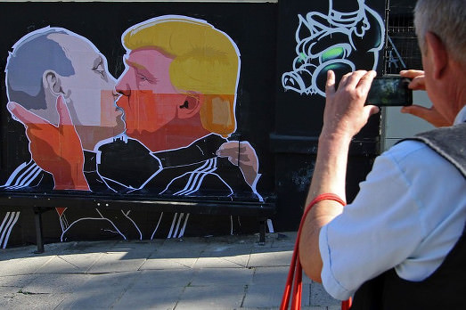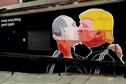 Il tutto avviene a Vilnius, Lituania, dove la popolazione è preoccupata della eccessiva simpatia tra il candidato alla presidenza degli Stati Uniti e il presidente della grande Russia. Per Trump, Putin è un “leader rispettabile” e per Putin Trump è una “persona colorita e talentuosa”. A dare volto ai timori è stato lo street artist e graphic designer lituano Mindaugas Bonanu. Tre giorni fa, con la complicità di Dominykas Ceckauskas, proprietario di un ristorante vicino, che l’ha aiutato e coperto durante la lavorazione, ha svelato la sua opera. Che si chiama Make Everything Great Again. Fosse vero.