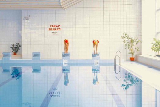 Le foto della slovacca Maria Sbarbova invece ci portano in piscina. Luoghi che, anche questi, d’estate, possono risultare saturi di un’umanità accaldata, e quindi non propriamente nella loro forma migliore. Ma che invece nelle immagini di Sbarbova si rarefanno, fino a diventare asettici e minimalisti. Corpi efebici, costumi castigati, cuffie che annullano le chiome fluenti a mollo. Tutto, insomma, che evoca un clima affascinante, ma che ha anche un che di ospedaliero, a metà tra il recente Youth di Sorrentino e il vecchio Cocoon Ron Howard.