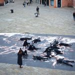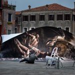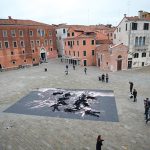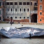 Ieri mattina l’artista francese Gérard Rancinan ha steso in Campo Sant’Angelo una tela di 9×15 metri, la più grande opera fotografica mai esposta nella laguna. Revolution è una provocazione diretta, che in maniera incisiva ci invita a riflettere e a confrontarci sul tema dell’immigrazione e sui cambiamenti in atto nella società di oggi. Una rivisitazione de La Zattera della Medusa di Géricault con protagonisti personaggi che richiamano gli ibridi che popolano le opere di Jheronimus Bosch e che sembrano appartenere a un mondo fantastico, ma non poi così lontano dal nostro. Ecco per voi alcune fotografie scattate da un drone durante l’happening, in attesa della mostra alla pop-up gallery Bel-Air Fine Art Guggenheim, (prima galleria permanente in Italia e decimo spazio del gruppo BEL-AIR FINE ART Contemporary Art) che inaugurerà domani 13 maggio alle ore 18.00 a Dorsoduro 686. (NG)