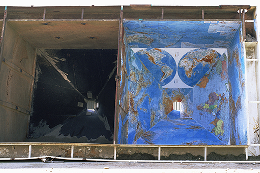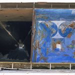 Ma cosa raccontano, all’atto pratico le fotografie di Meneghello? Lo rivelano perfettamente i titoli: Blu Infranto, o di un cavallo giocattolo affondato nel mare gelato; Caino Sale, mentre Abele è rovesciato dal fratello in un ambiente ostile; La fatica del rosso… fino a Remapping the world, 2017, il ciclo fotografico più recente e più emblematico, dove grandi mappe geografiche colorate del vecchio mondo vengono progressivamente ricoperte da ampie distese di fanghiglia o liquami, fino quasi a scomparire. Immagini per riflettere sulla rottura “tra l’ordine naturale dell’ambiente che ci circonda e l’innominabile attuale della globalizzazione”. Immagini che, come è dovere dell’arte, metaforizzano l’attualità senza farsi cronaca.