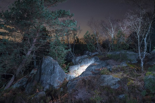 Stanco del rumore e del caos della città, il fotografo francese Alexis Pichot ha passato molto tempo ad esplorare la foresta di Fontainebleau, soprattutto di notte. Percepito come un luogo funzionale alla propria rigenerazione fisica e spirituale, Pichot ha sviluppato dopo poco tempo una forte connessione col posto. Il risultato di queste coraggiose escursioni notturne, al chiaro di Luna, è “Marche Céleste”, una serie di fotografie in cui una fonte di luce artificiale illumina lo spazio circostante, trasformandolo e rendendolo più accessibile. La paura iniziale provocata da un luogo sconosciuto, scompare dopo la riscoperta del rapporto con la natura e di sé stessi.