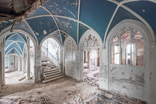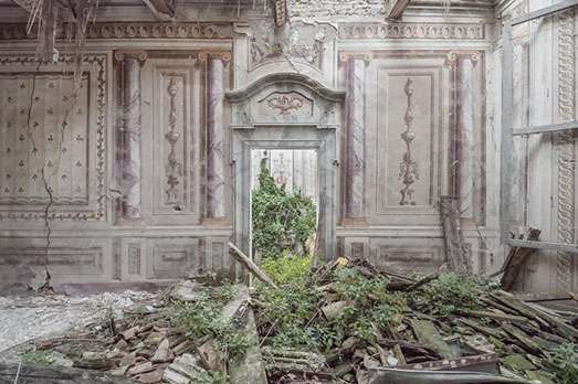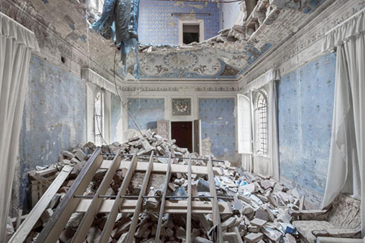 Sullo stesso solco si muove la fotografa croata Mirna Pavlovic che si è fatta un giro per l’Europa alla ricerca di palazzi, un tempo ricchi e fastosi, ridotti oggi a un cumulo di macerie o poco più.