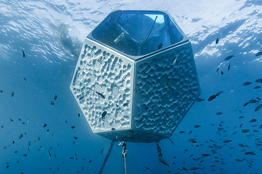 Doug Aitken, l’artista che l’anno scorso ci aveva incantato con Mirage, la casa specchiata costruita in mezzo al deserto californiano, è tornato con una nuova opera, questa volta non in superficie, ma nelle profondità dell’Oceano. Tirate fuori bombole d’ossigeno, maschere e pinne, e preparatevi a nuotare insieme a banchi di pesci coloratissimi, perché l’Isola di Santa Catalina, in California, vi aspetta con Underwater Pavilions. L’installazione, prodotta dall’Associazione Parley for the Oceans e presentata in collaborazione con il MOCA – Museum of Contemporary Art di Los Angeles, consiste in tre sculture subacquee galleggianti, temporaneamente ormeggiate al fondale. Costruite con materiali scelti appositamente, ogni struttura presenta una parte specchiata per riflettere il paesaggio marino, così da funzionare come una specie di osservatorio caleidoscopico per i visitatori, mentre le altre superfici, ruvide e simili a rocce, sono state progettate per favorire la crescita dell’ecosistema marino, che potrà essere seguita da qualsiasi parte del mondo, grazie a una rete di telecamere. Arte e scienza nuovamente insieme, per osservare e relazionarsi con l’ambiente marino, e per sollecitare il pubblico alla sua tutela, tema oggi più attuale che mai. (NG)