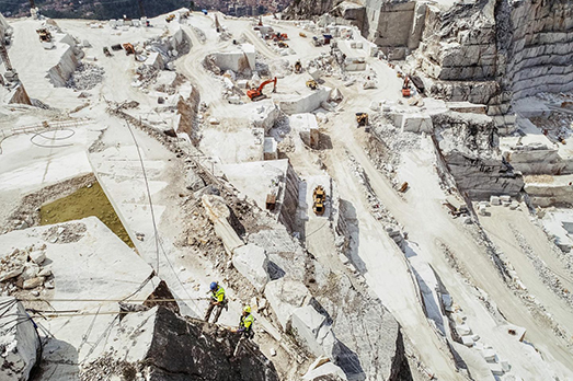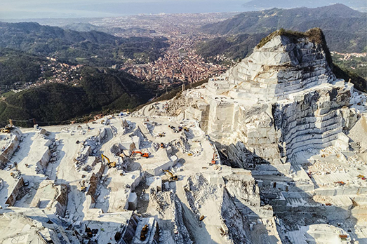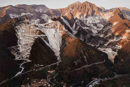 Per uno dei suoi progetti, il fotografo italiano Luca Locatelli ha immortalato la bellezza delle Alpi Apuane, la catena montuosa celebre per il suo marmo. Gli scatti di Locatelli offrono uno spettacolo unico sulle cave, note già al tempo dei Romani, permettendoci di vedere dall’alto il processo di estrazione, di lavorazione e di trasporto del meraviglioso marmor lunensis.