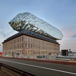 Quella che vedete è la risistemazione della nuova Casa Portuale di Anversa firmata dal suo studio Zaha Hadid Architects e fresca di inaugurazione. Un edificio, un’invenzione piazzata sopra il vecchio complesso che, sinuoso e come lanciato verso il mare, quasi però lo schiaccia, lo offende, lo esaspera. Come se a qualcuno venisse piantato sulla testa un magnifico ma ingombrante cappello o come – è sempre accaduto e a quanto pare accade tuttora – una architettura preesistente, un prezioso tempio greco per esempio, venisse “sfrattato” da un’altra architettura, una bella chiesa cristiana per esempio, che lo ingloba e lo sovrasta.