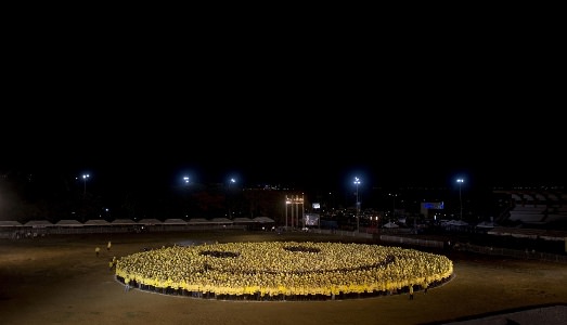 Nelle Filippine non sono affatto d’accordo. E anzi ci si sono messi in più di 6mila, tutti in fila, anzi in cerchio, ordinati e precisi come solo gli asiatici sanno essere e, con il favore della notte, ciascuno indossando una camicia gialla e nera, ecco che hanno realizzato l’emoticon più famoso del mondo, quello con la faccina sorridente.
