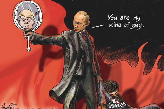 Per ora, la notizia della vittoria di The Donald alla convention repubblicana è stata salutata con un po’ di vignette. Ce le aspettavamo ben più cattive. E invece sono un po’ annacquate, poco velenose e piuttosto perbene. Che sia un nuovo corso, un altro esempio di politically correctness? Ci sono andati più pesanti i nostri vignettisti con la vicenda Bevilacqua La Masa, con la striscia che vi proponiamo un po’ più in basso nel nostro sito.