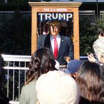 Ma non c’è solo questa mostra, dove oltre una pietra tombale con inscritto il nome di The Donald, ci sono disegni e installazioni neanche tanto cattivi. In giro per la Grande Mela sono comparsi un chiosco con dentro un mago che predice il futuro e che ha le fattezze del magnate  e una statua che lo raffigura nudo, pistolino e con stampata in faccia una delle sue smorfie più tipiche e poco incoraggianti circa il futuro che sarebbe con lui alla Casa Bianca.