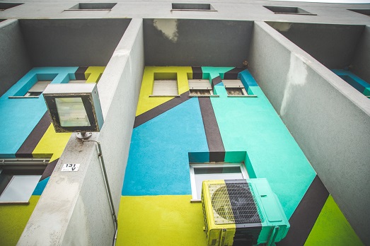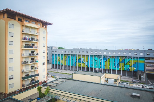 Si è conclusa la prima fase del terzo capitolo di “Without Frontiers – Lunetta a colori”, il progetto di arte urbana e arte pubblica curato da Simona Gavioli e Giulia Giliberti, che ha coinvolto diversi artisti, chiamati a intervenire con i loro lavori a Lunetta, quartiere della periferia di Mantova. In questa prima fase, il protagonista dell’evento iniziato ad aprile, che proseguirà anche nella settimana dal 18 al 24 giugno, è stato JOYS. Con “TSUNAMY”, un murale di 826mq, lo street artist padovano ha trasformato completamente la facciata del palazzo di Viale Piemonte, che si trova proprio all’ingresso del quartiere. L’enorme lavoro, una rielaborazione del suo nome d’arte JOYS, è stato realizzato utilizzando forme geometriche marcate da linee nere che dialogano con l’architettura dell’edificio, mentre, colori come il verde e il turchese, coinvolgono gli elementi naturali che circondano il palazzo.