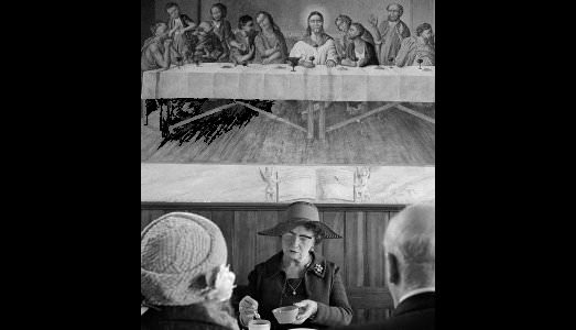 Questa, in particolare, si intitola Anniversary Tea. Certo, le vecchiette sono bruttine assai. Ma peggio è l’Ultima cena che campeggia sopra di loro.