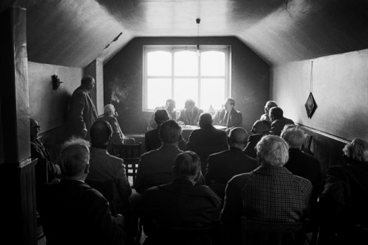 Martin Parr ha colpito ancora. Anzi, ha colpito in tempi non sospetti. Questa foto l’ha scattata tra il 1975 e il 1979 e fa parte di una serie di 75 scatti, chiamata The Non-conformists, realizzati nel West Yorkshire, precisamente nella città di Hebden Bridge. Luogo ideale per le scorribande di Parr, per via dell’abbondanza delle cappelle metodiste e battiste sparse nell’area e soprattutto per la popolazione che le frequenta. Gente semplice di cui l’obiettivo del fotografo della Magnum rivela tic piccolo-borghesi, con il corredo di abitucci e rituali che fanno tanto sfigata provincia british