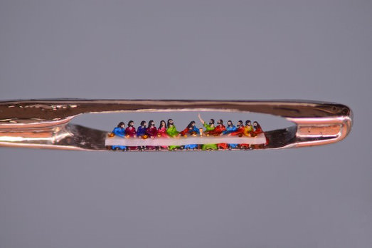 Anche se si sa che quelle sculture riprodotte in grande in realtà misurano mezzo millimetro di altezza, finché non si vede lui, Willard Wigan, che scruta la cruna di un ago (perché è lì che lui le colloca), non si riesce a credere che sì, effettivamente, la scena di Alice nel paese delle meraviglie, la famiglia Obama (una delle sue ultime sculture) siano alte al massimo mezzo millimetro e una riproduzione del Davide di Michelangelo sia scolpita da un singolo granello di sabbia.