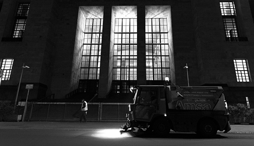 Dal 2015 a oggi, Giulia Bellezza ha osservato Milano attraverso il suo obiettivo, seguendo una serie di figure che grazie al loro lavoro sono indispensabili al funzionamento della città. Gli operatori dell’ Amsa, Atm, Carabinieri, Croce Rosa Celeste, Naga, Polizia