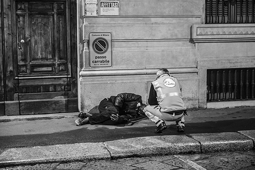 Dal 2015 a oggi, Giulia Bellezza ha osservato Milano attraverso il suo obiettivo, seguendo una serie di figure che grazie al loro lavoro sono indispensabili al funzionamento della città. Gli operatori dell’ Amsa, Atm, Carabinieri, Croce Rosa Celeste, Naga, Polizia